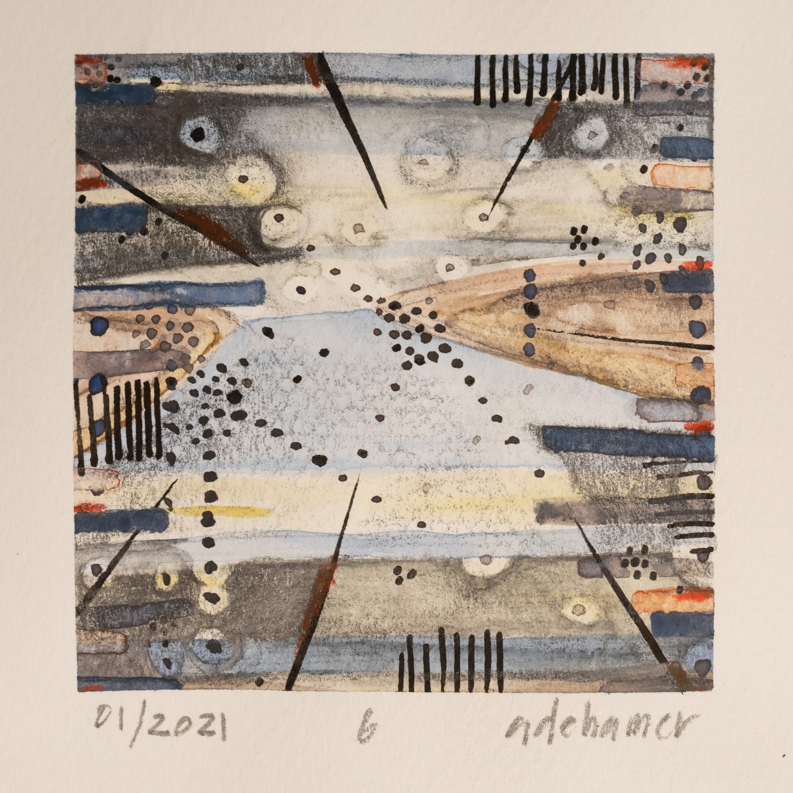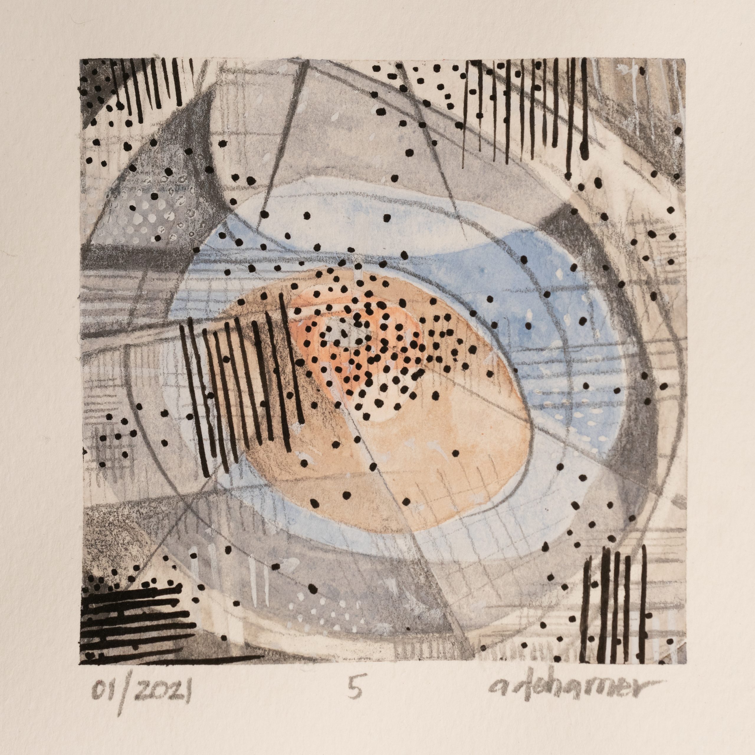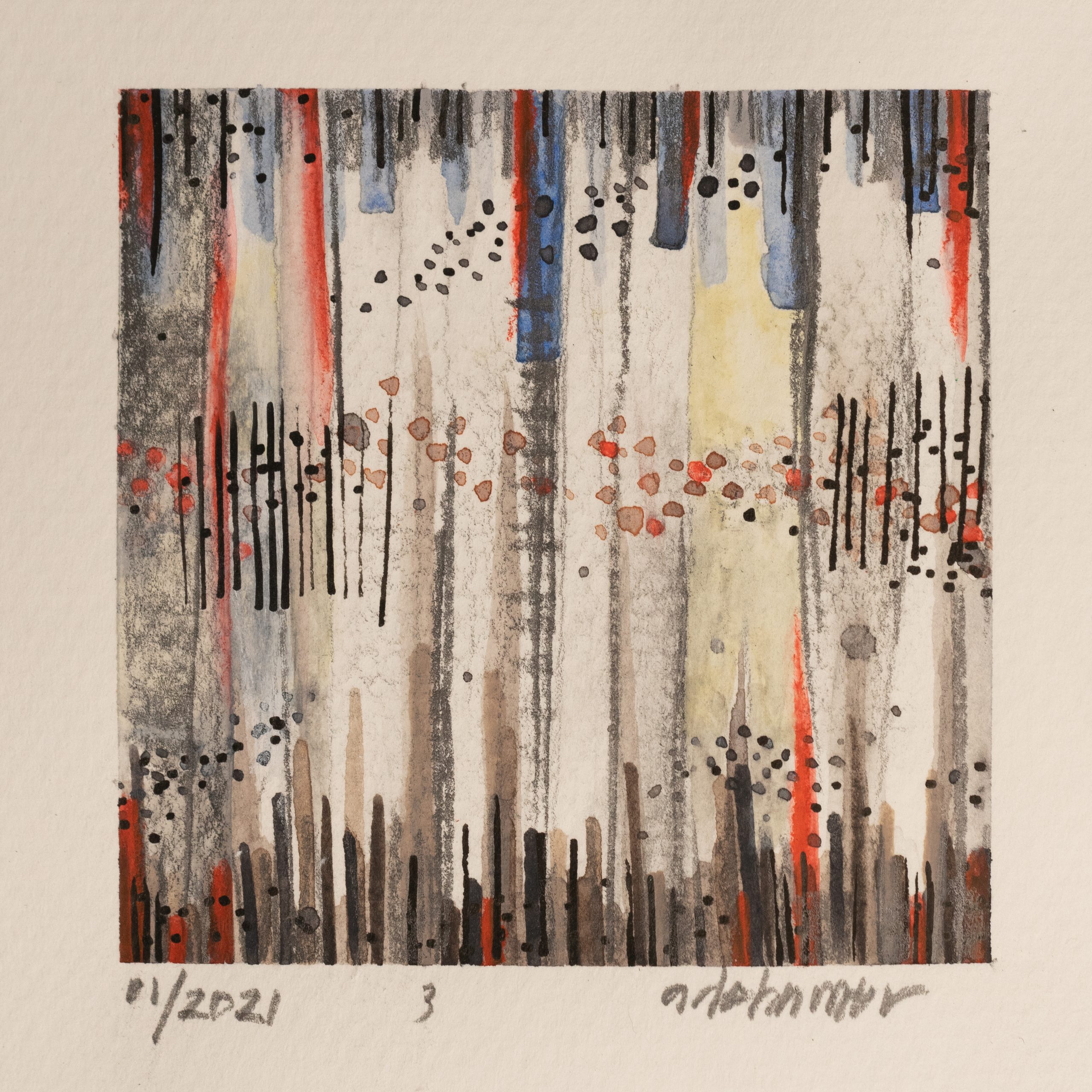 Mixed Media on Paper.  3″ x 3″