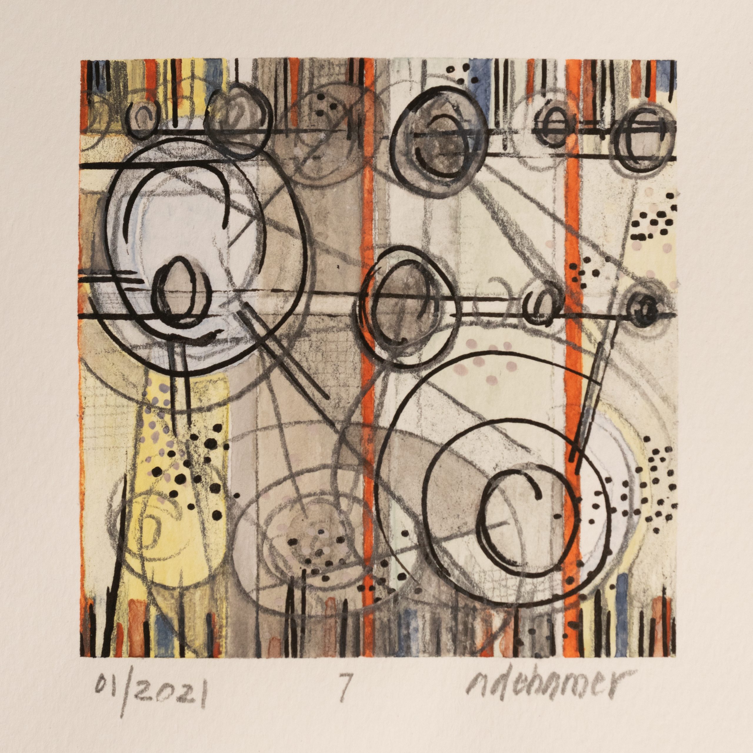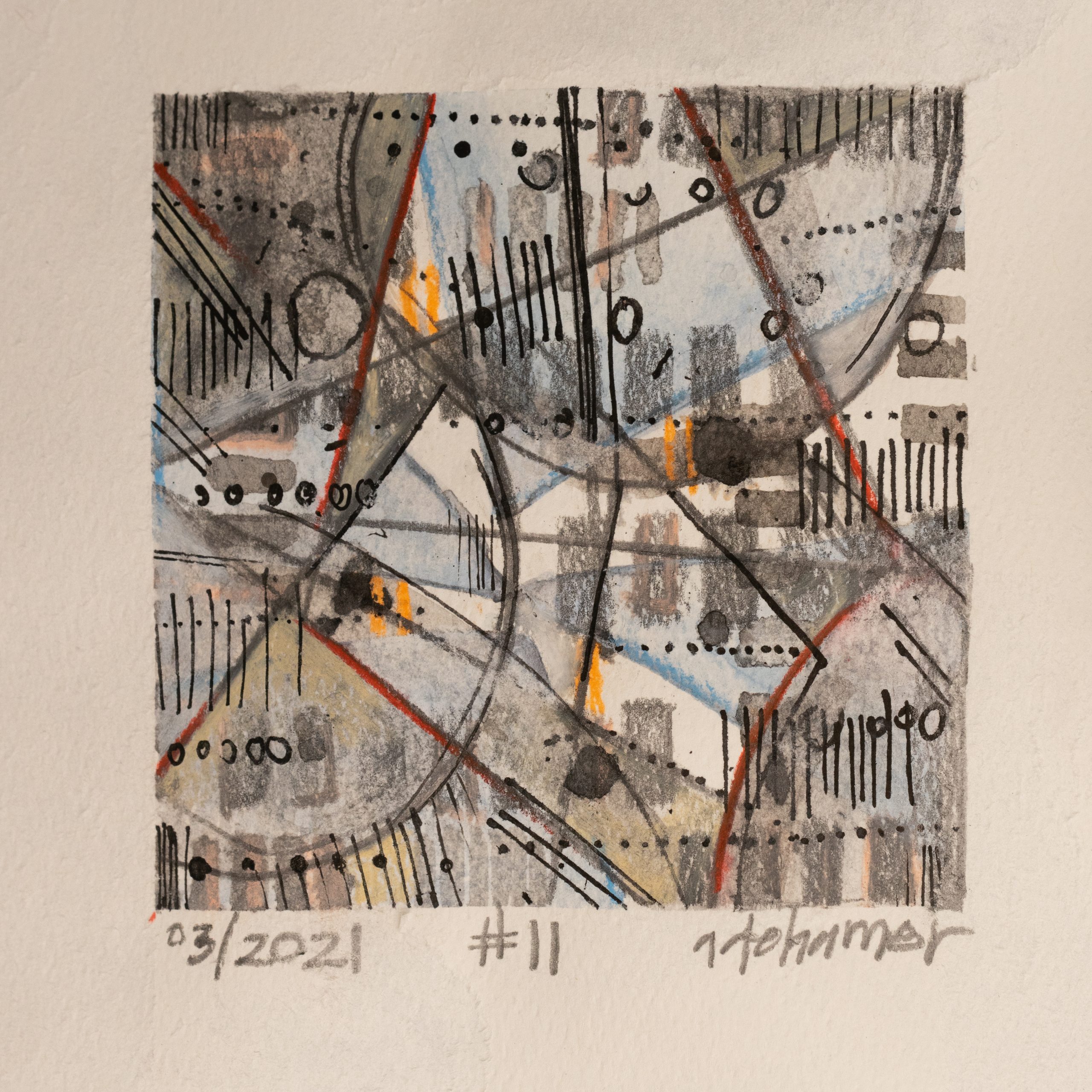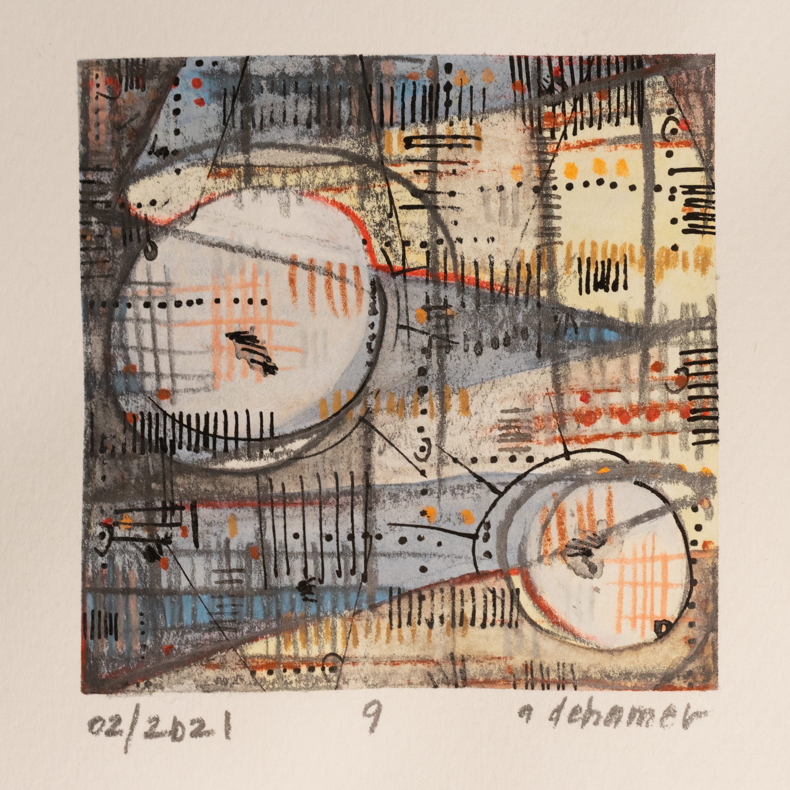 Mixed Media on Paper.  3″ x 3″